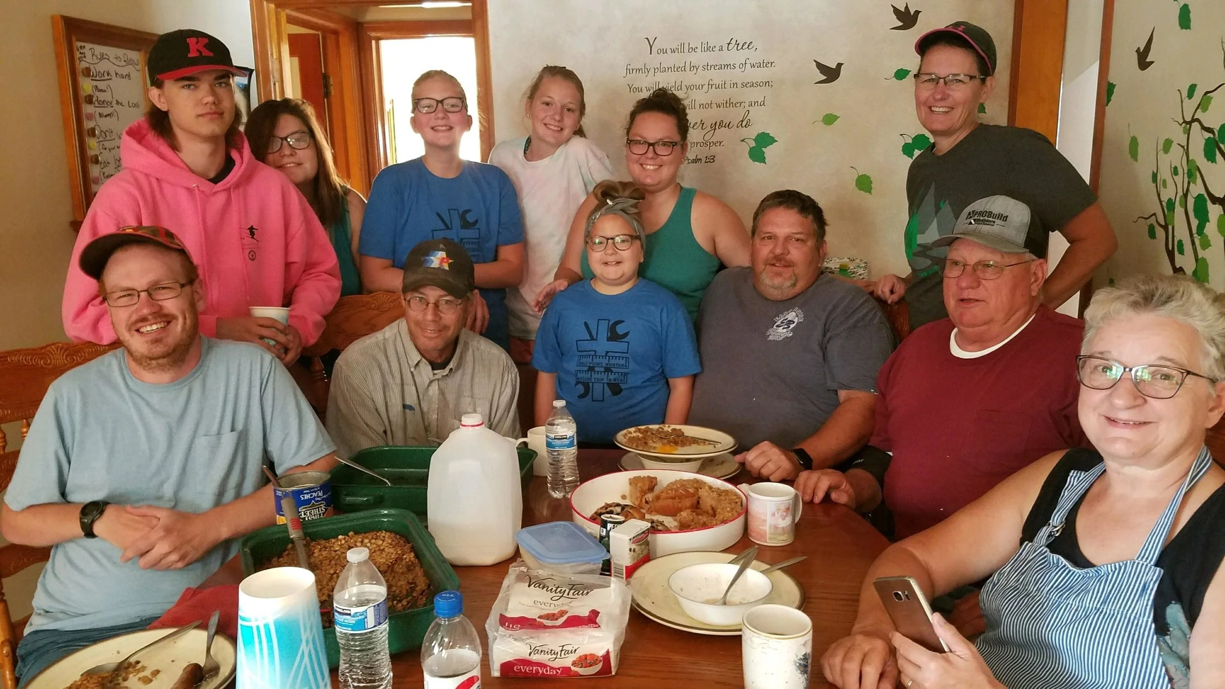 This past week Tikkun Olam hosted a team of 12 Christian craftsmen/women who traveled from Twin Falls, Idaho to Wolf Point and worked tirelessly over 5 days to get us moving on our summer projects.. Pastor Greg ‘Bear’ Morton from the Magic Valley Bible Church of Twin Falls and his team which included his family, Cheri, Stephanie, Jordan, Madison and Riley Morton along with Carl, Diana and Sadie Sweet, Loran Schmidt, Michael Helsley, and Aaron Poortvilet all traveled over 12 hours to make this trip happen. With both of our teacher’s houses being built nearly 70 years ago there were some definite needs for improvement. This dynamic group tackled the following projects and really showed the community Christ’s love and dedication to his people!